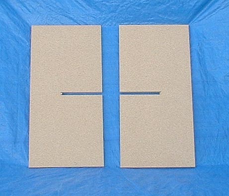 All parts are made of 5/8" particleboard. Triangle "cleats" are attached to table top with staples.