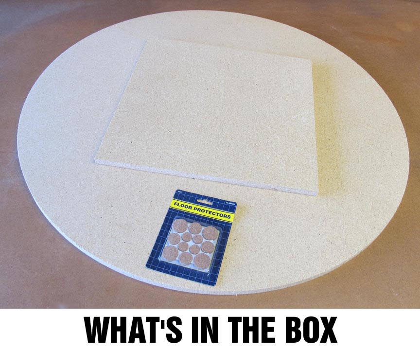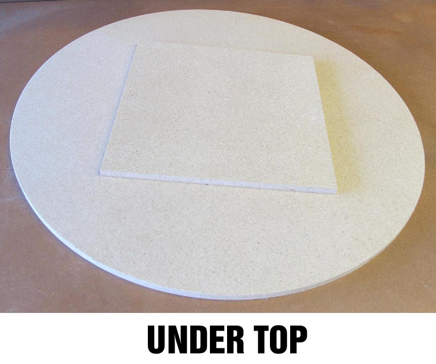 Finished dimensions- 34" diameter x 8 1/4" high(when using recommended concrete blocks as base). Top and floor protectors are included. BASE IS NOT INCLUDED.